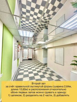 -планировка второго зала позволяет использовать его отдельно от первого зала, т.к. за счёт больших роллет в первом зале можно сделать автономное использование второго зала и вести торговлю в нём, даже, если арендатор в первом зале не работает, также второй зал можно делить на 2 отдельные части и сдавать их по отдельности или добавлять части второго зала (нужного метража) к первым двум залам, что позволяет гибко подстраиваться под запросы арендаторов и максимально эффективно использовать всю площадь, из второго зала есть также выход во двор,