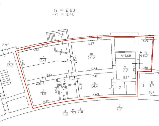 • Высота потолков: 2,6 м