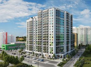 Жилой комплекс комфорт-класса представляет собой дом с 5 секциями переменной этажности — от 9 до 18 этажей. Здание возведено по монолитной технологии из газобетона, фасады оштукатурены. Входы спроектированы на уровне земли, по принципу безбарьерной среды. ЖК заселяется, формируется база потребителей для пекарен, парикмахерских, кофеен. Предлагаемое помещение подойдет под любое из этих назначений!