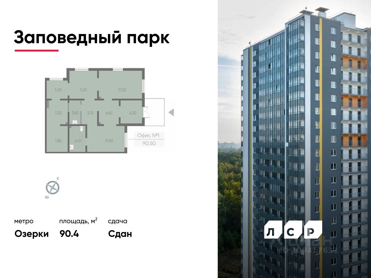 Продается помещение свободного назначения 90.40 кв. м в жилом комплексе комфорт-класса "Заповедный парк" в Приморском районе.
