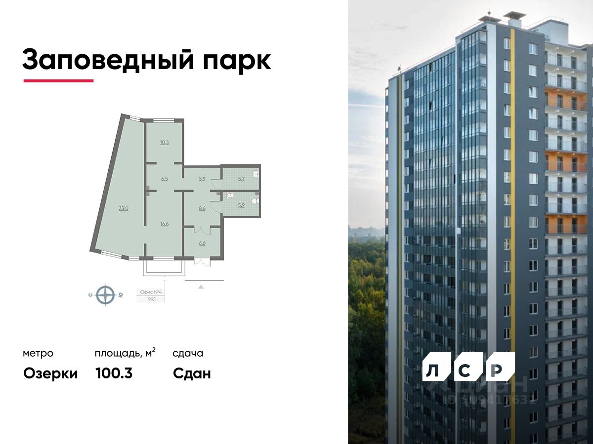 Продается помещение свободного назначения 100.30 кв. м в жилом комплексе комфорт-класса "Заповедный парк" в Приморском районе.