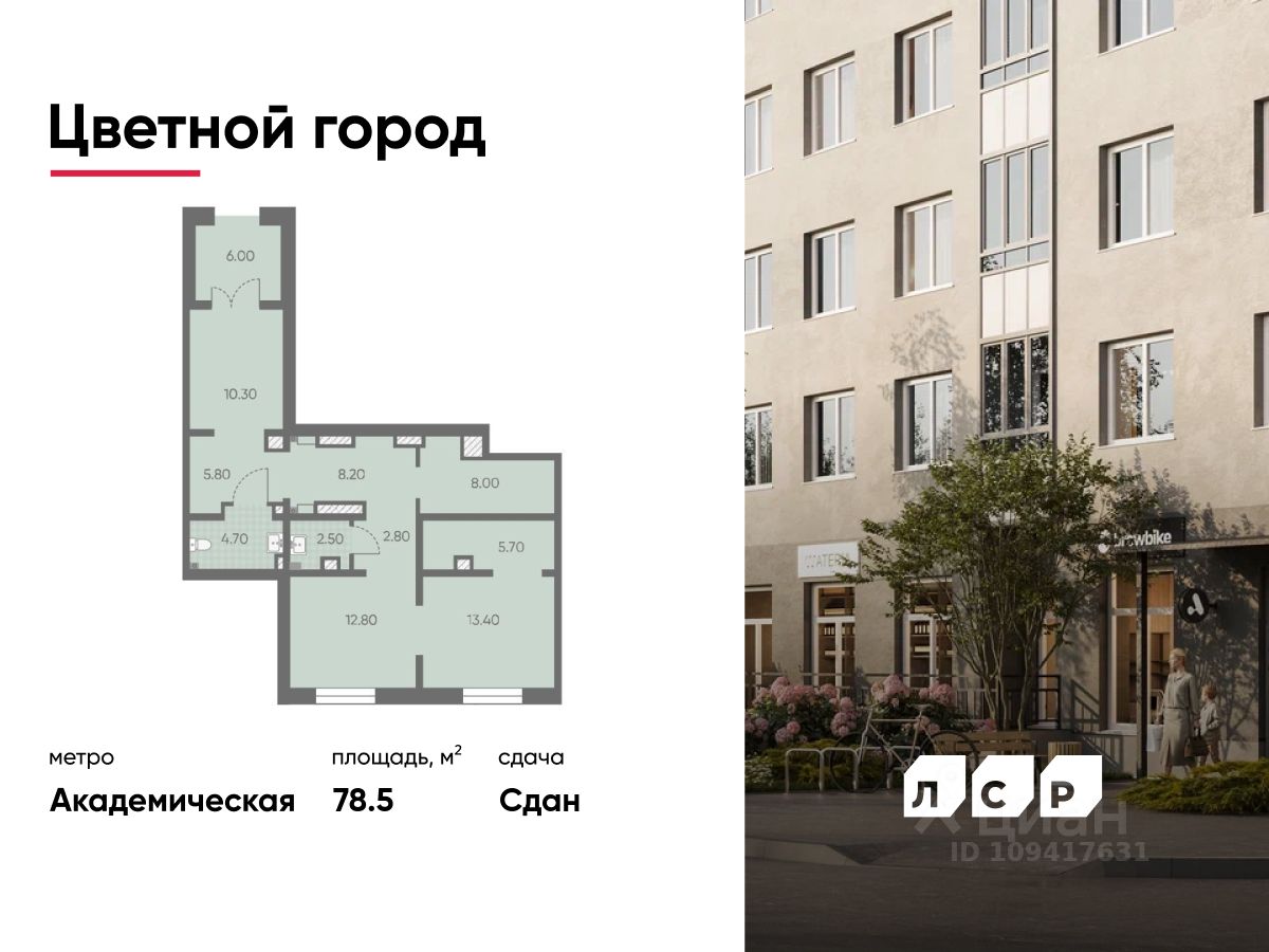 Продается помещение свободного назначения 78.50 кв. м в жилом комплексе комфорт-класса "Цветной город" в Красногвардейском районе.