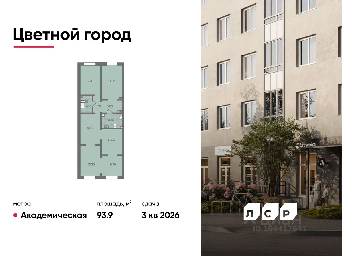 Продается помещение свободного назначения 93.90 кв. м в жилом комплексе комфорт-класса "Цветной город" в Красногвардейском районе.