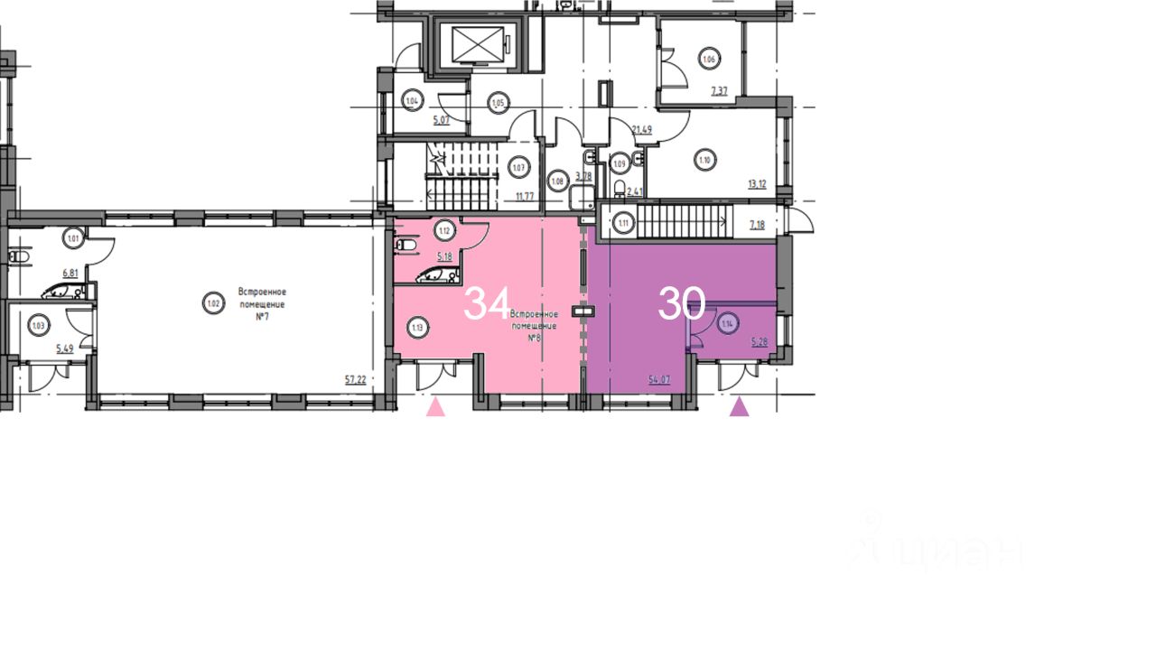 5. в первой очереди строительства всего 10 коммерческих помещений, расположенных на первой линии комплекса - из их состава помещение имеет наименьший формат (34 и 30 кв.м)