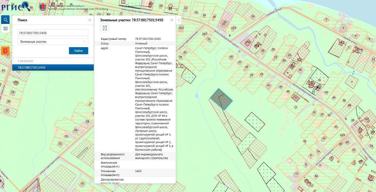Электронный аукцион по продаже земельного участка для индивидуального жилищного строительства по адресу: Российская Федерация, Санкт-Петербург, внутригородское муниципальное образование Санкт-Петербурга поселок Понтонный, Шлиссельбургское шоссе, участок 101, площадь 1463 кв.м, кадастровый номер 78:37:0017501:5450