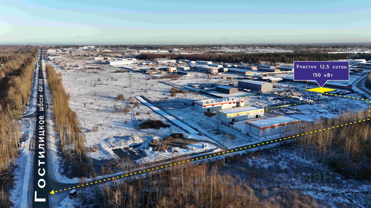 Индустриальный парк Порзолово (Гостилицкое шоссе). 5 км от съезда с КАД. Быстроразвивающийся район с высокой деловой активностью. Удобная связь с Петергофом, Низино, Аннино.