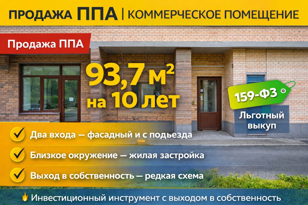 Продажа ППА | Коммерческое помещение 93,7 м² | 1 этаж | 10 лет | Выкуп по 159-ФЗ