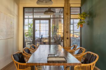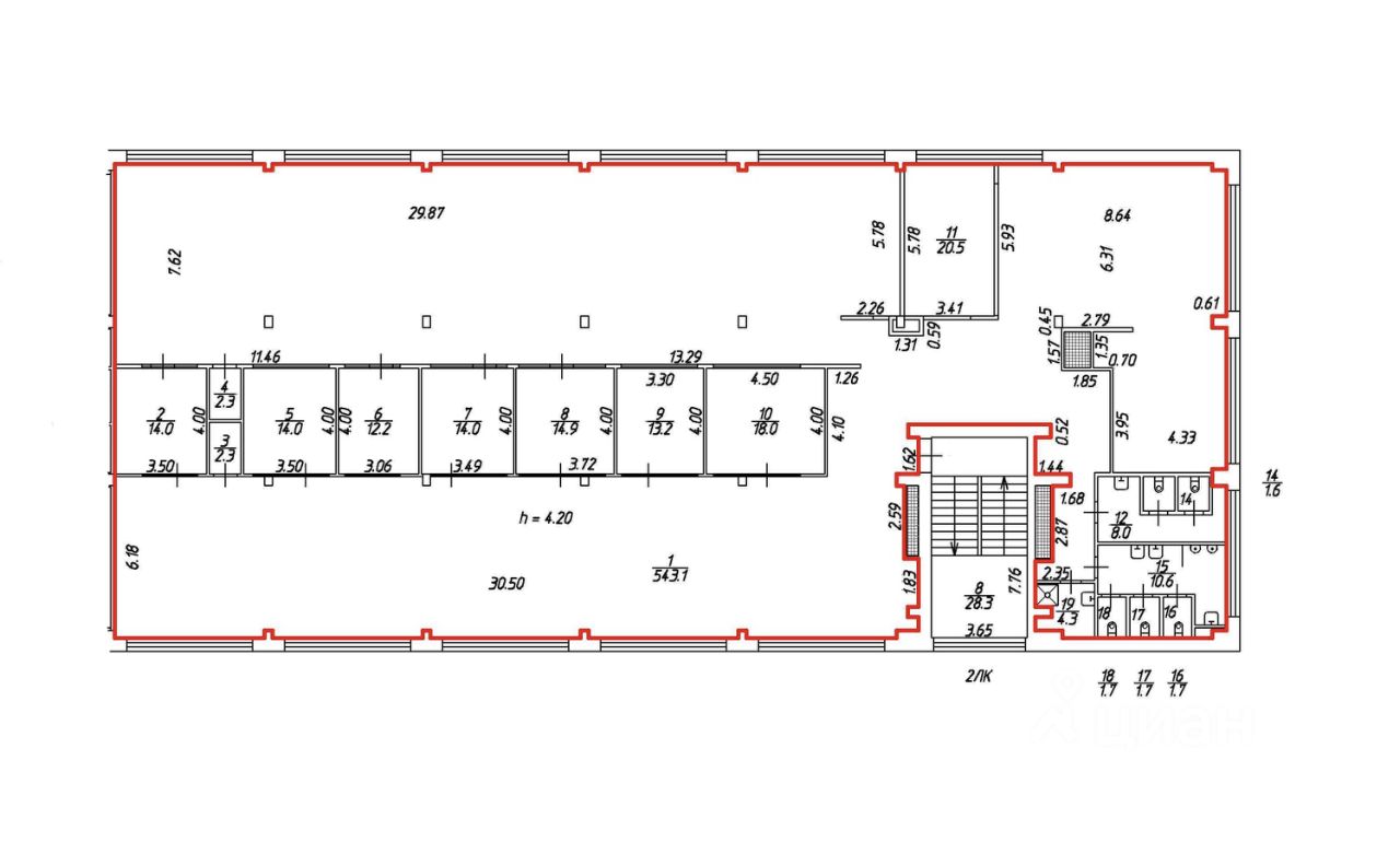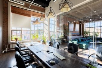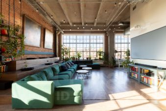Эргономичная планировка: 2 рабочие зоны, несколько переговорных, кухня, зона отдыха с диваном и проектором, санузлы, вспомогательные помещения