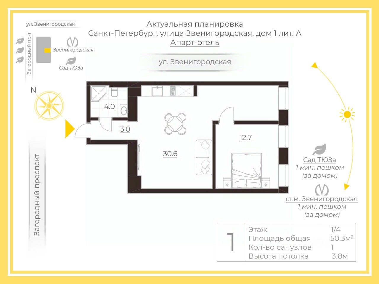 Рядом все знаковые достопримечательности: музеи, театры, дворцы, парки, реки и каналы. Локация обеспечивает высокий туристический спрос и стабильную заполняемость апартаментов.