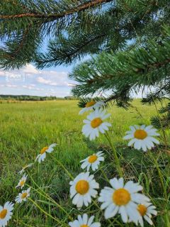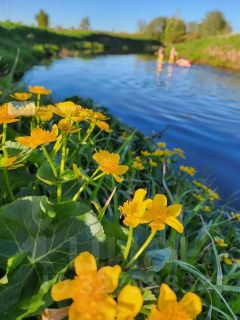 Чистая вода в реке, вокруг девственные леса и поля, прекрасная экология.
