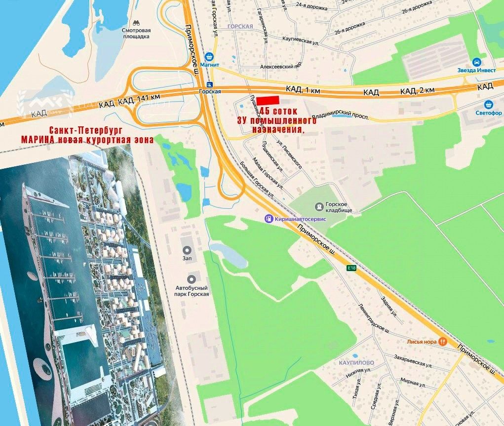 По проекту города в 600 метрах от участка строят курорт "Санкт-Петербург Марина"