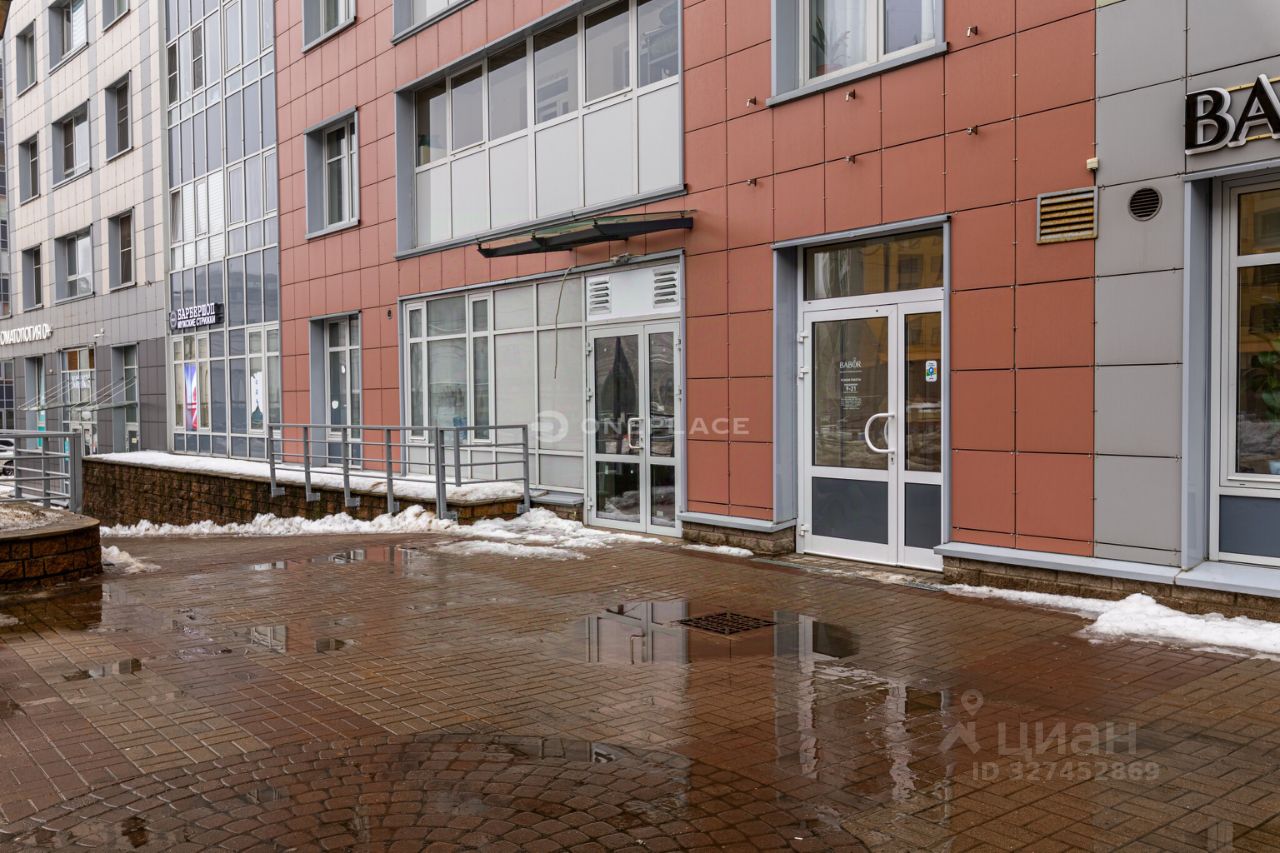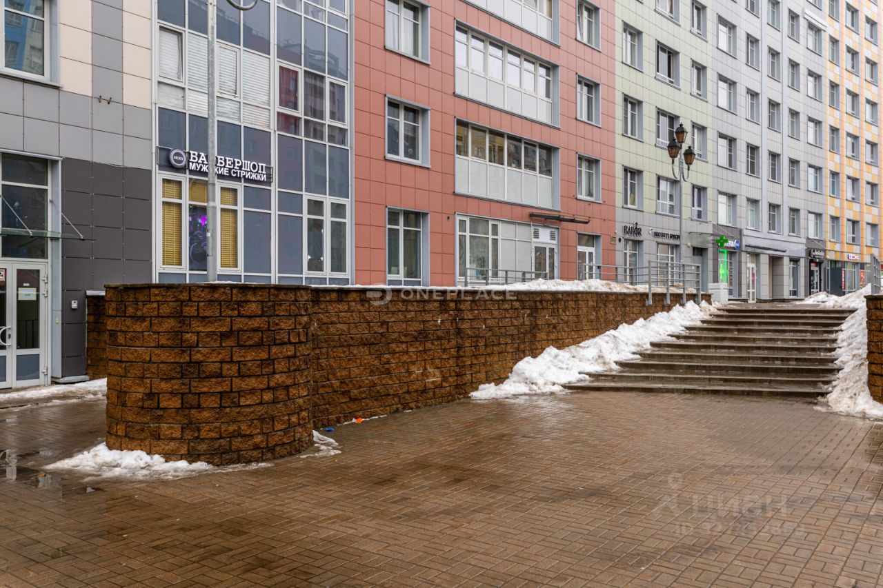 Вход в помещение - с оживленного променада в центре жилого комплекса. Окна на 2 стороны: на променад и во двор.