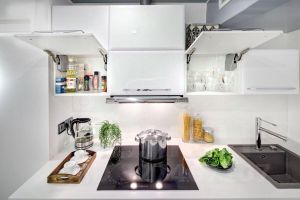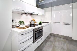 Встроенная кухня с доводчиками "blum"; индукционная варочная панель духовка "Kuppersbursch" посудомоечная машинка, холодильник, стиральная машинка.
