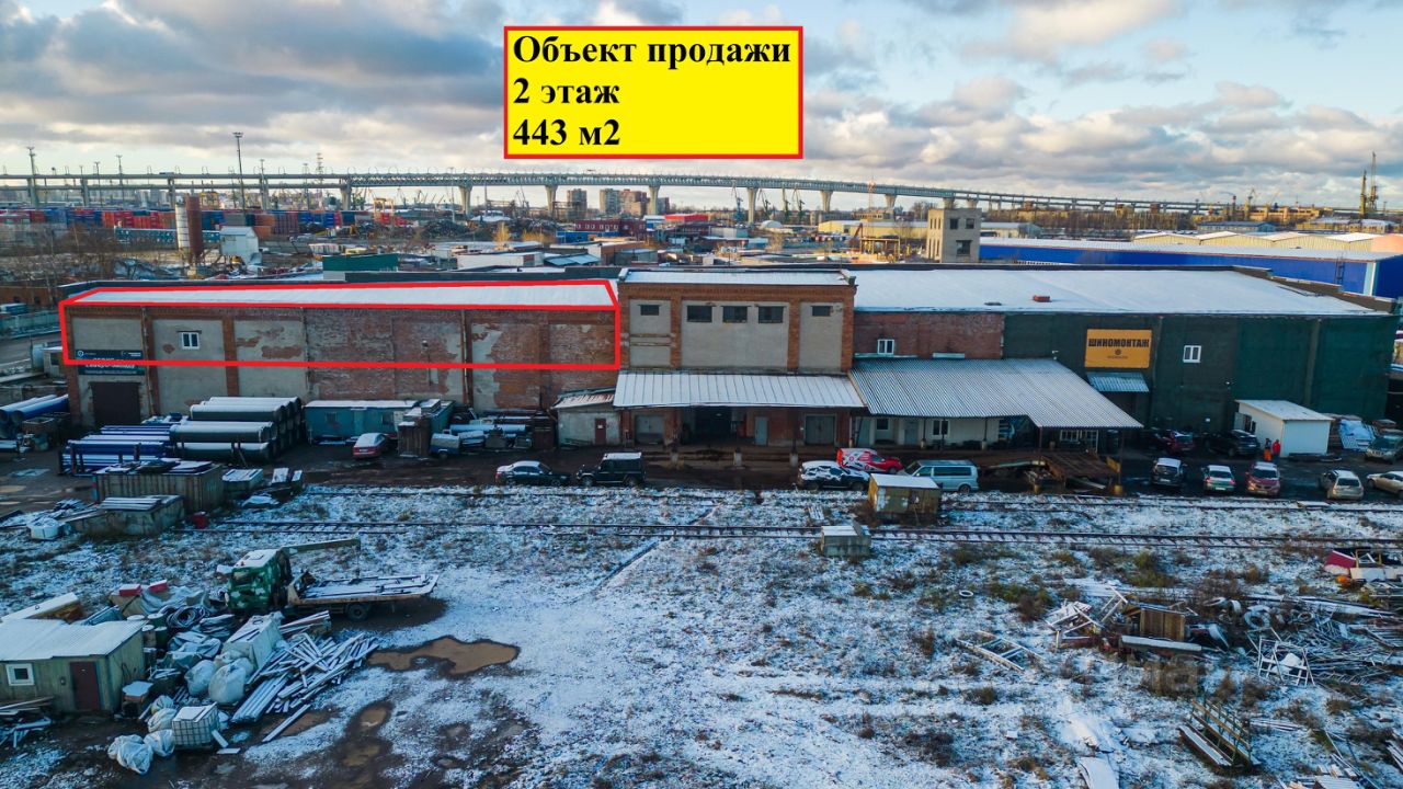 Продаётся помещение в производственно-складском здании площадью 443 м² в Санкт-Петербурге.