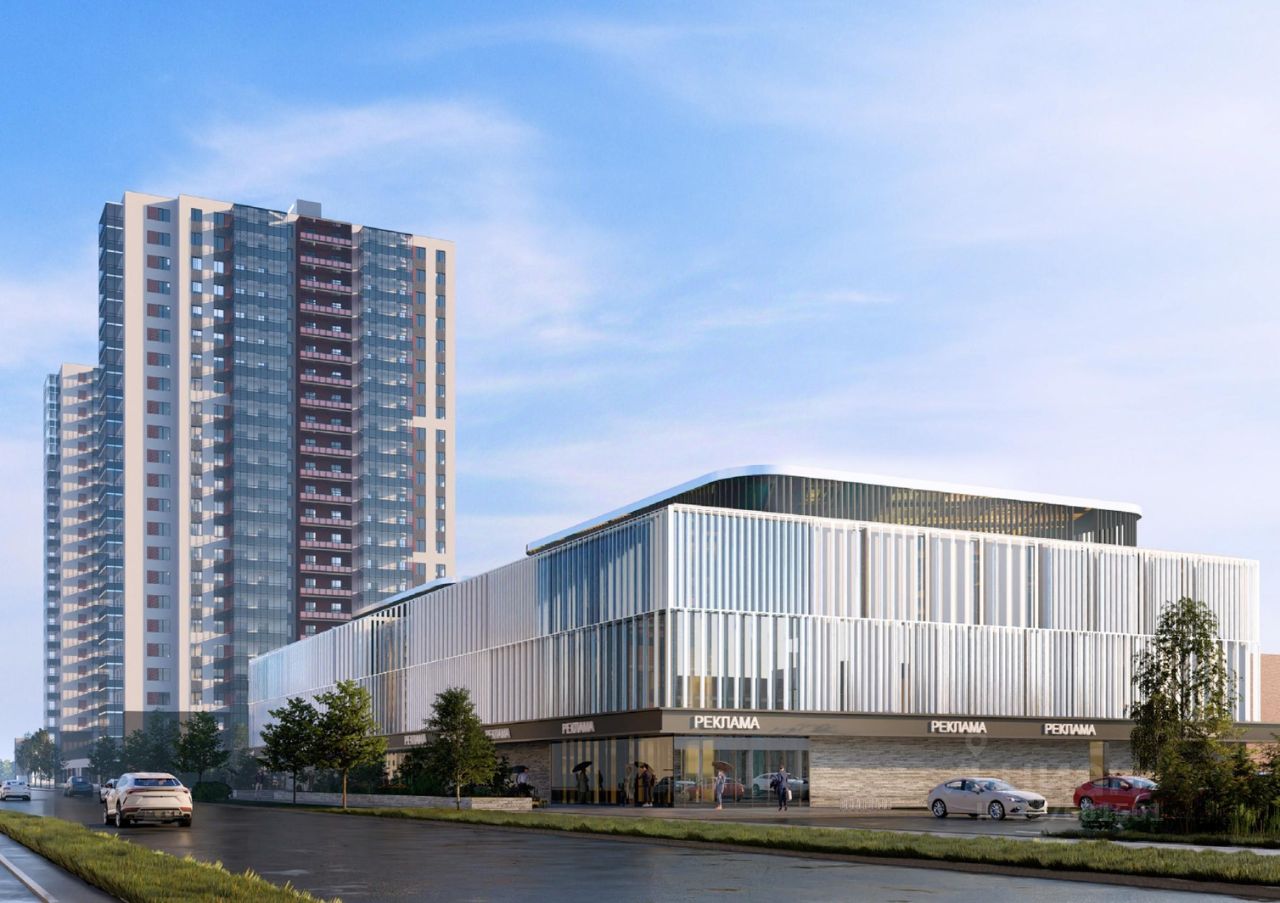 примечание: Многофункциональный комплекс класса А представляет собой 4 этажное здание, возведенное по монолитной технологии строительства с фасадным остеклением. В проекте предусмотрены пассажирские и грузовые лифты.