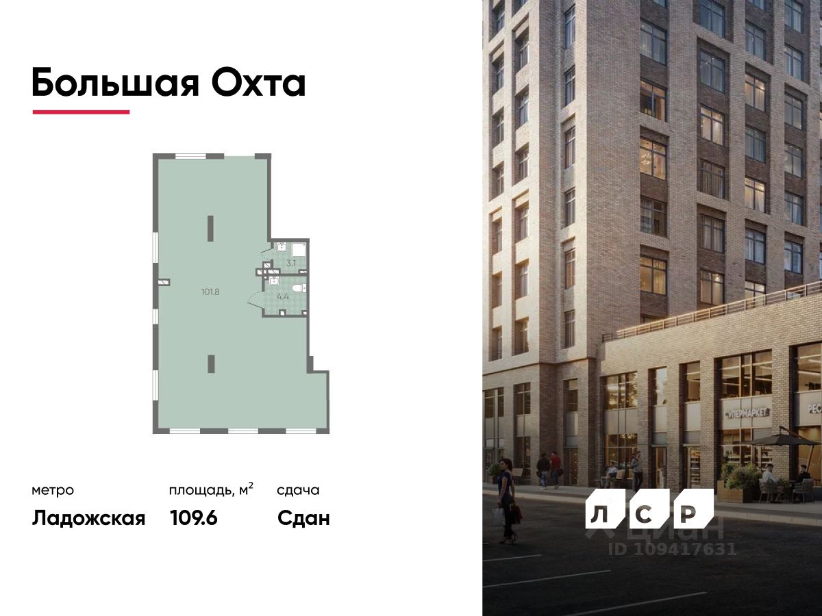 Продается помещение свободного назначения 109.60 кв. м в жилом комплексе бизнес-класса "Большая Охта" в Красногвардейском районе между улицами Якорной и Партизанской, в пяти минутах езды от Большеохтинского моста.