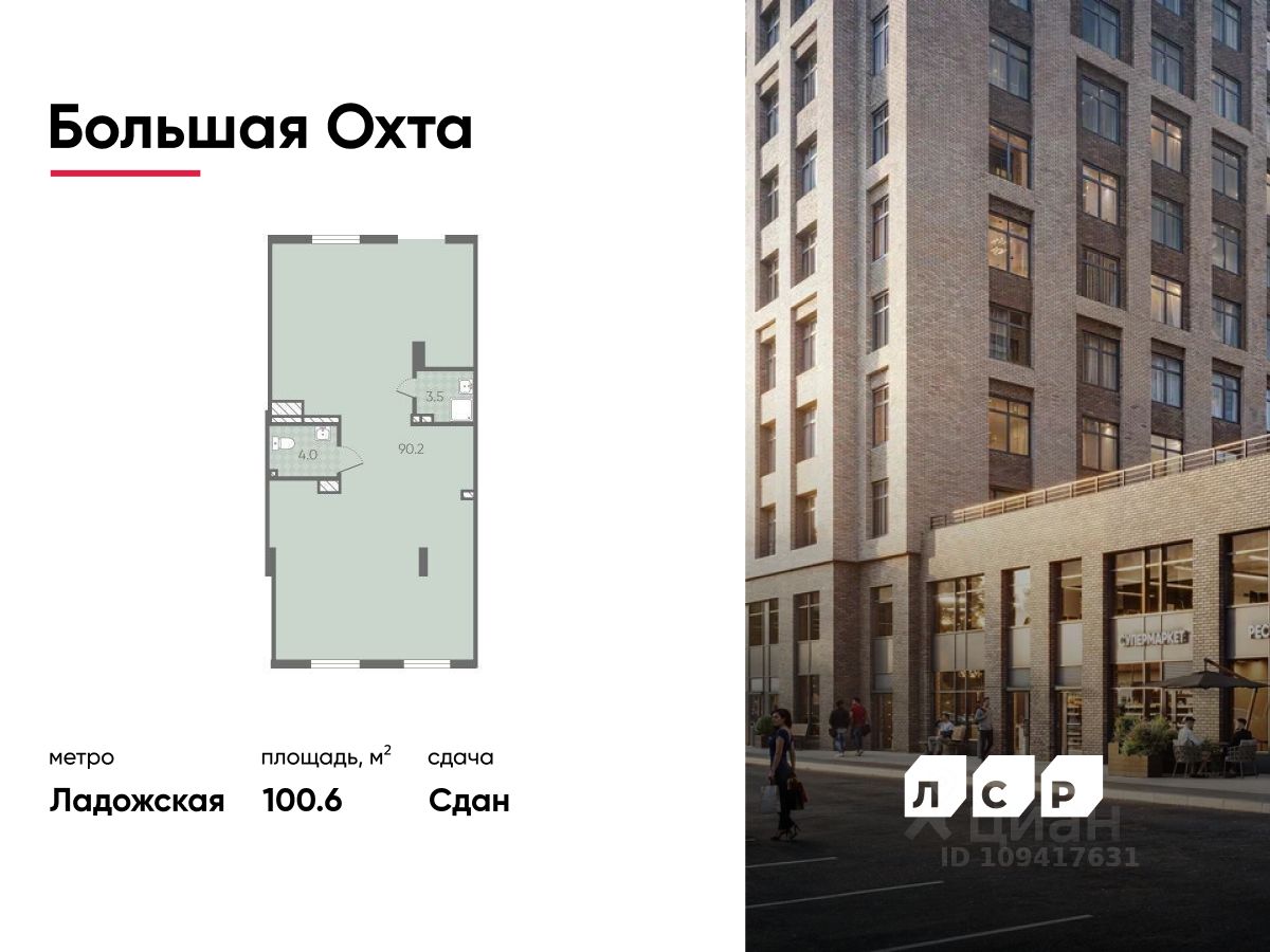 Продается помещение свободного назначения 100.60 кв. м в жилом комплексе бизнес-класса "Большая Охта" в Красногвардейском районе между улицами Якорной и Партизанской, в пяти минутах езды от Большеохтинского моста.