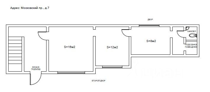 Вход - 2-ой двор. Окна двор. Место тихое, но проходное. Вход через подъезд ( единств. помещение), можно сделать отдельный вход.