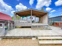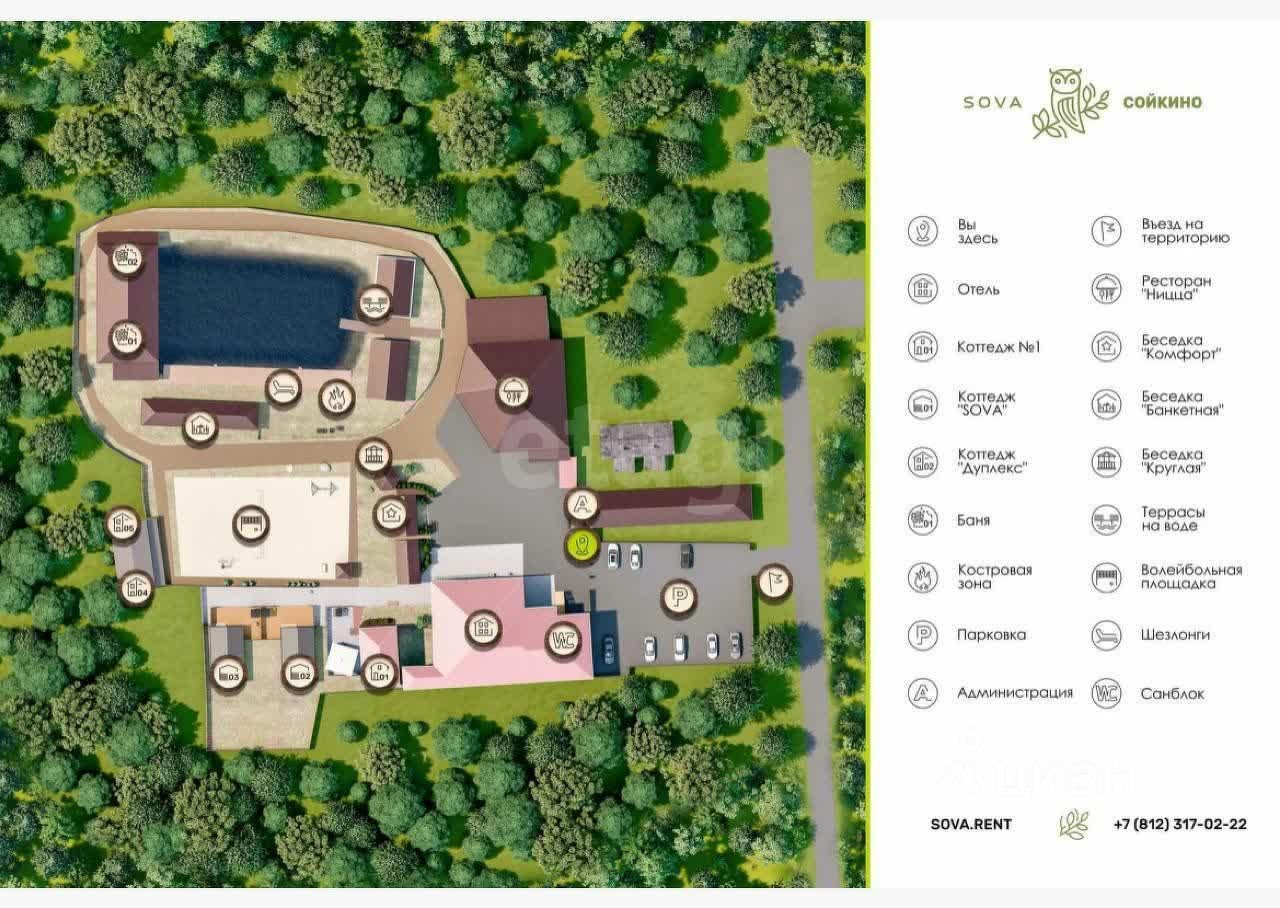 База отдыха в поселке Сойкино, в непосредственной близости от гольф-клуба "Земляничные поляны". Участок площадью 80 соток включает все необходимое для комфортного отдыха и успешного ведения бизнеса в сфере гостеприимства. Основной инфраструктурный объект — ресторан на 100 посадочных мест, оформленный в современном стиле и готовый к приему гостей. Для размещения посетителей предусмотрена гостиница на 8 номеров и пять отдельных коттеджей, что позволяет одновременно принимать большие компании или несколько групп отдыхающих.