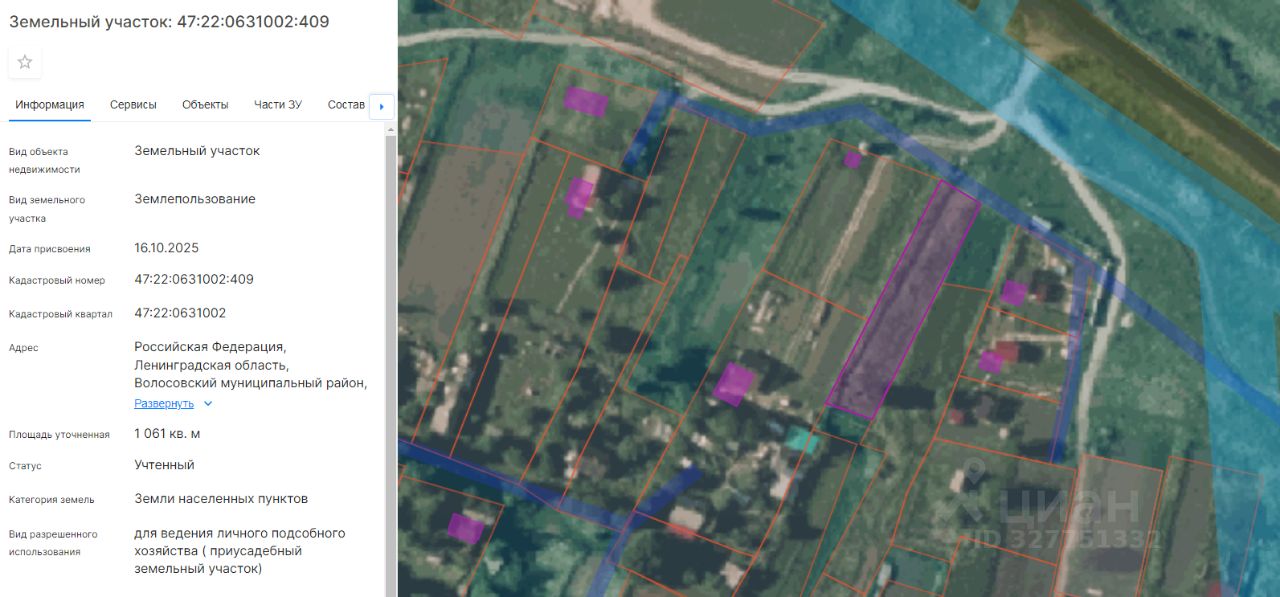 Земельный участок с кадастровым номером 47:22:0631002:409, площадью 1061 кв.м.