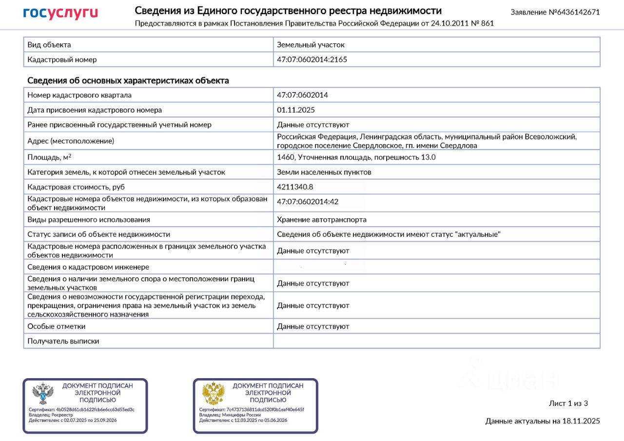 Кадастровый номер участка: 47:07:0602014:2165