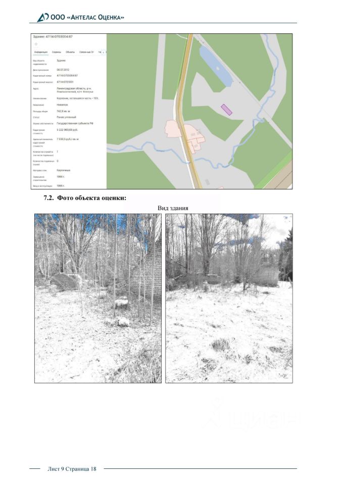 Нежилое здание общей площадью 694,2 кв.м., адрес объекта: Ленинградская область, р-н. Ломоносовский, п/ст. Копорье, с кадастровым номером 47:14:0703004:87. Объект располагается на землях лесного фонда