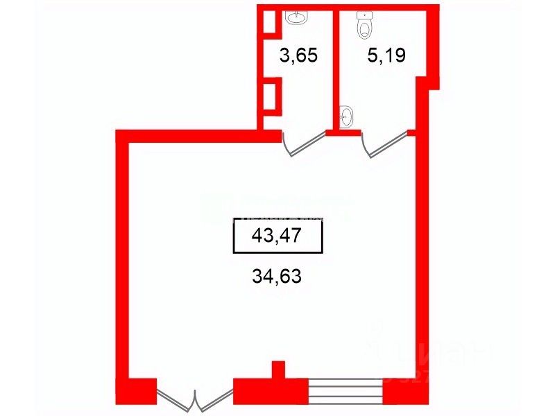 • Площадь: 43,47 м2;