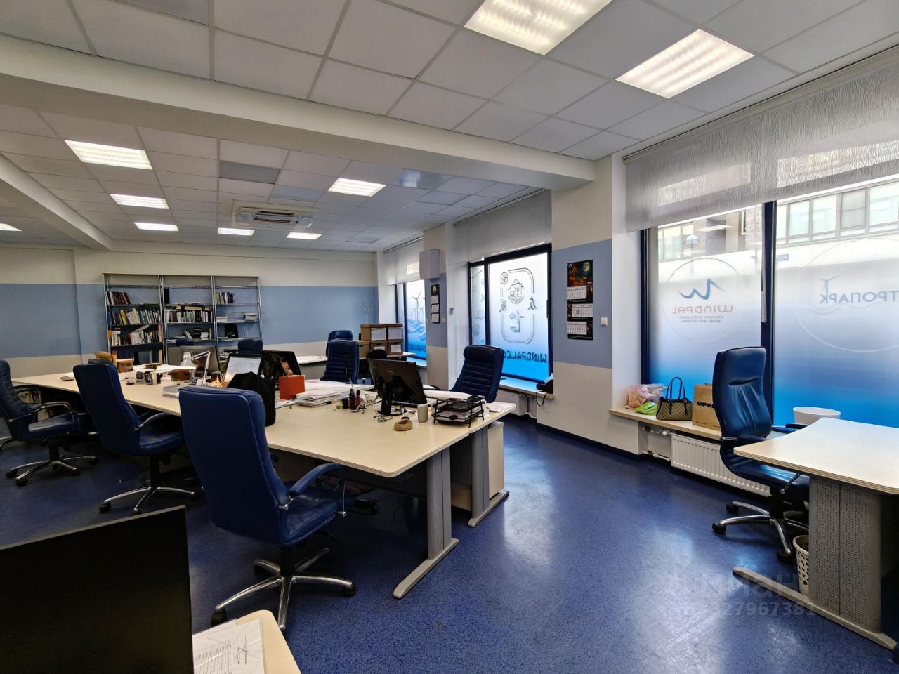 • 5 больших витринных окон с роллетами в основном зале (выходят на фасадную часть здания), все кабинеты также с окнами;