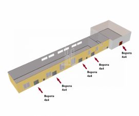 Здание 80х12м с ангаром 35х23м— стены кирпич, бетон-монолит, пол на бeтоннoй аpмиpовaннoй плитe толщиной 500 мм, нагрузка на пол свыше 10—20 тонн/м2.