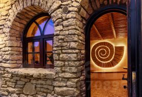 Пространство сочетает в себе архитектурную эстетику, комфорт и уют. Комплекс включает в себя 5 отдельных зданий а так же spa - зону с большой подогреваемой купелью.