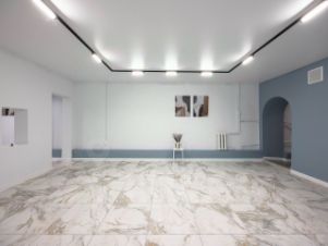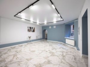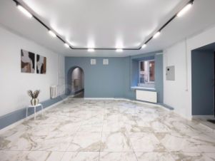Планировка : состоит из холла, большой комнаты ( презентационный зал), двух кабинетов, складского пространства и санузла. Мощность 9 кВт. Потолок 2, 6 м