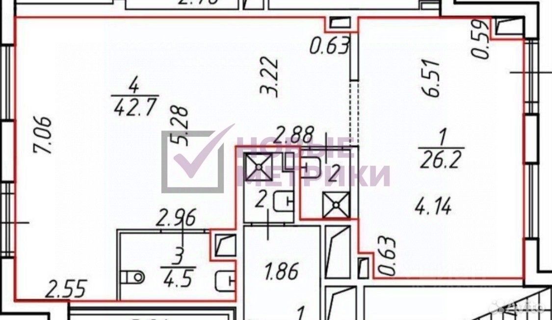 • Гибкость бизнеса: Наличие 2 отдельных входов и 2 мокрых точек позволяет разделить помещение на два независимых блока или использовать его под бизнес с жесткими требованиями (например, медицина или общепит).