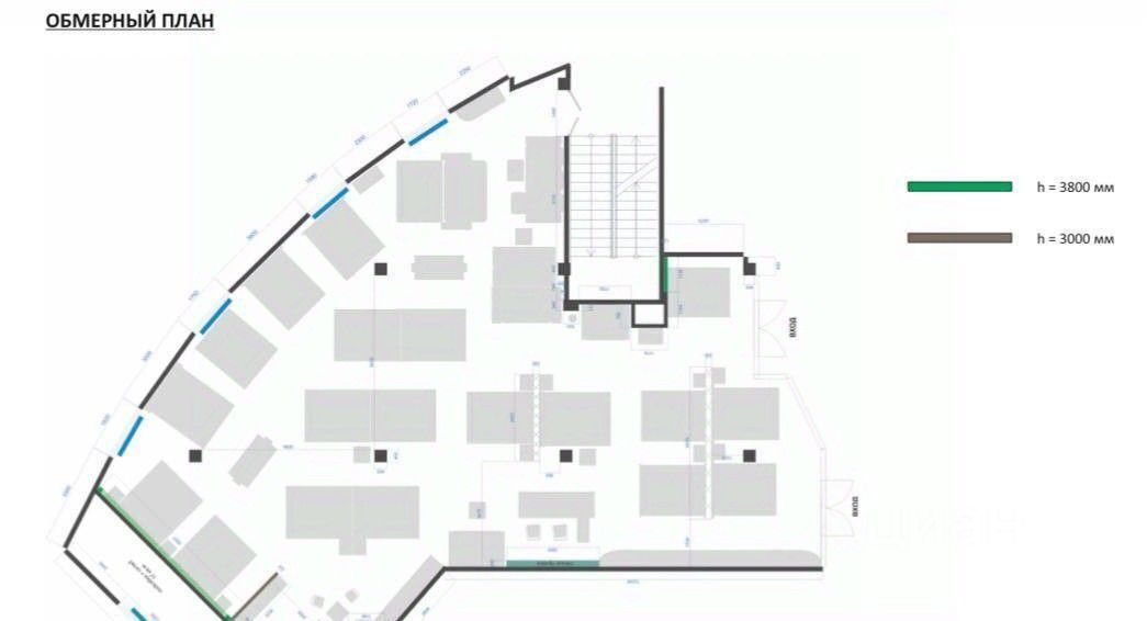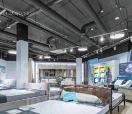 Планировка: Открытое пространство с витринными окнами вдоль прохода, высокие потолки (4 м), современная отделка "под ключ" (полы, освещение, вентиляция).