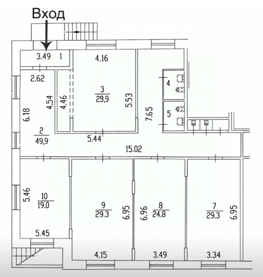 Помещение общей площадью 188 кв. м., расположено на 1 этаже, имеет отдельный входа, состоит из нескольких кабинетов, есть зона ресепшн, четыре с/у. Роллеты на окнах. Помещение просторное, светлое.