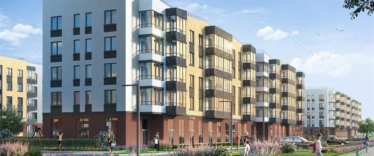 Малоэтажный квартал, состоящий из жилых домов высотой 5 этажей. Фасады выполнены в теплых оттенках бежевого и терракотового спектра. Парапеты домов имеют уклоны, фасады украшают декоративные пояса, а под окнами располагается рустовка.