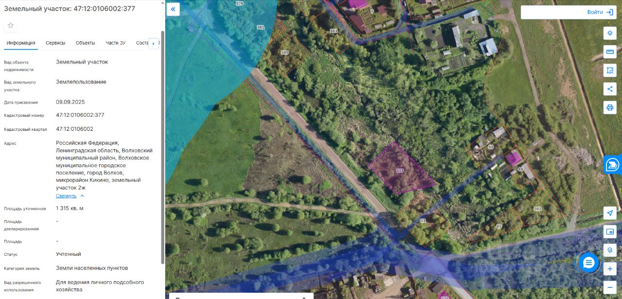 Продажа земельного участка с КН 47:12:0106002:377, расположенного по адресу: Ленинградская область, Волховский муниципальный район,г. Волхов, микрорайон Кикино, земельный участок 2ж площадью 1315 кв.м, разрешенное использование - для ведения личного подсобного хозяйства.