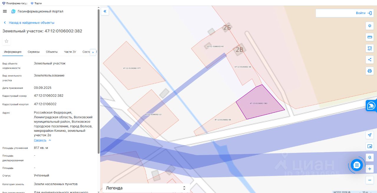 Продажа земельного участка с КН 47:12:0106002:382, расположенного по адресу: Ленинградская область, Волховский муниципальный район,г. Волхов, микрорайон Кикино, земельный участок 2е площадью 817 кв.м, разрешенное использование - для индивидуального жилищного строительства.