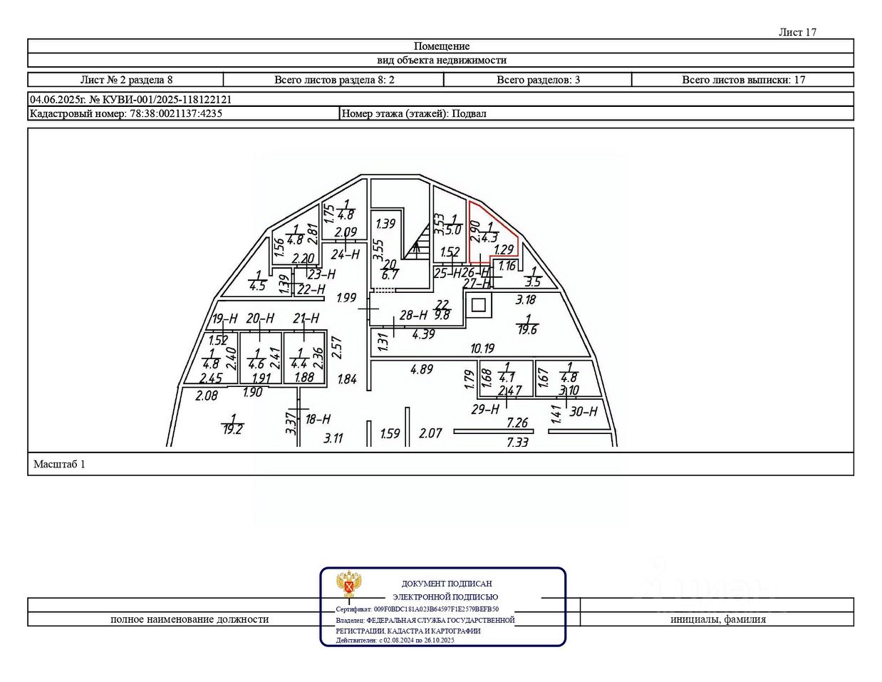 Подвергнутое аресту СОСП по г. Санкт-Петербургу ГМУ ФССП России по и/п 36375/25/98078-ИП от 12.02.2025 г в пользу взыскателя Межрайонной инспекции Федеральной налоговой службы 16 по Санкт-Петербургу, принадлежащее на праве собственности должнику Общество с ограниченной ответственностью Специализированный застройщик "СПБ Приморское" (ИНН 7703744616, ОГРН 1117746394402), имущество: помещение, назначение: нежилое, этаж: подвал, общей площадью 4,30 кв.м., расположенное по адресу: Российская Федерация, Санкт-Петербург, город Сестрорецк, Таможенная дорога, дом 11, корпус 1, строение 2, помещение 26-Н, кадастровый 78:38:0021137:4235. Имущество продается в том виде, в каком есть, в случае продажи возврату/обмену не подлежит. За скрытые дефекты Продавец ответственности не несет.