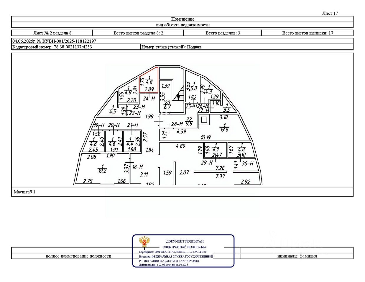 Подвергнутое аресту СОСП по г. Санкт-Петербургу ГМУ ФССП России по и/п 36375/25/98078-ИП от 12.02.2025 г в пользу взыскателя Межрайонной инспекции Федеральной налоговой службы 16 по Санкт-Петербургу, принадлежащее на праве собственности должнику Общество с ограниченной ответственностью Специализированный застройщик "СПБ Приморское" (ИНН 7703744616, ОГРН 1117746394402), имущество: помещение, назначение: нежилое, этаж: подвал, общей площадью 4,80 кв.м., расположенное по адресу: Российская Федерация, Санкт-Петербург, город Сестрорецк, Таможенная дорога, дом 11, корпус 1, строение 2, помещение 24-Н, кадастровый 78:38:0021137:4233. Имущество продается в том виде, в каком есть, в случае продажи возврату/обмену не подлежит. За скрытые дефекты Продавец ответственности не несет.