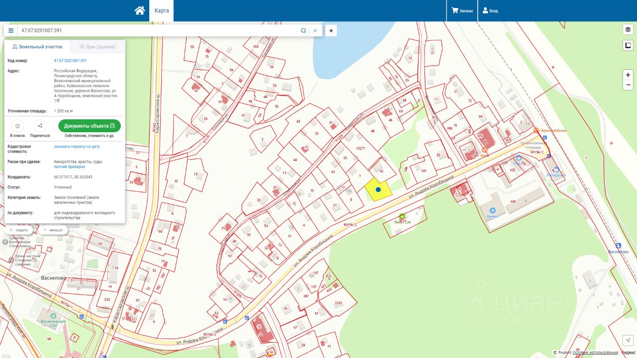 Продажа земельного участка из земель, государственная собственность на которые не разграничена, с кадастровым номером 47:07:0201007:391, площадью 1205 кв.м, категория земель: земли населенных пунктов, вид разрешенного использования: для индивидуального жилищного строительства, расположенного по адресу: Российская Федерация, Ленинградская область, Всеволожский муниципальный район, Куйвозовское сельское поселение, деревня Васкелово, ул. А. Коробицина, земельный участок 15Г.
