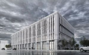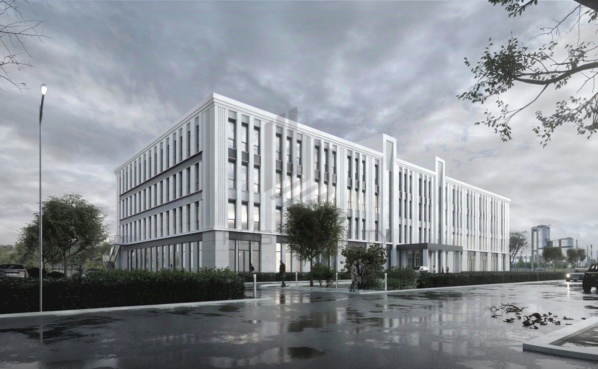 Многофункциональный комплекс класса А представляет собой 4 этажное здание, возведенное по монолитной технологии строительства с фасадным остеклением. В проекте предусмотрены пассажирские и грузовые лифты, подходящие для маломобильных групп населения.