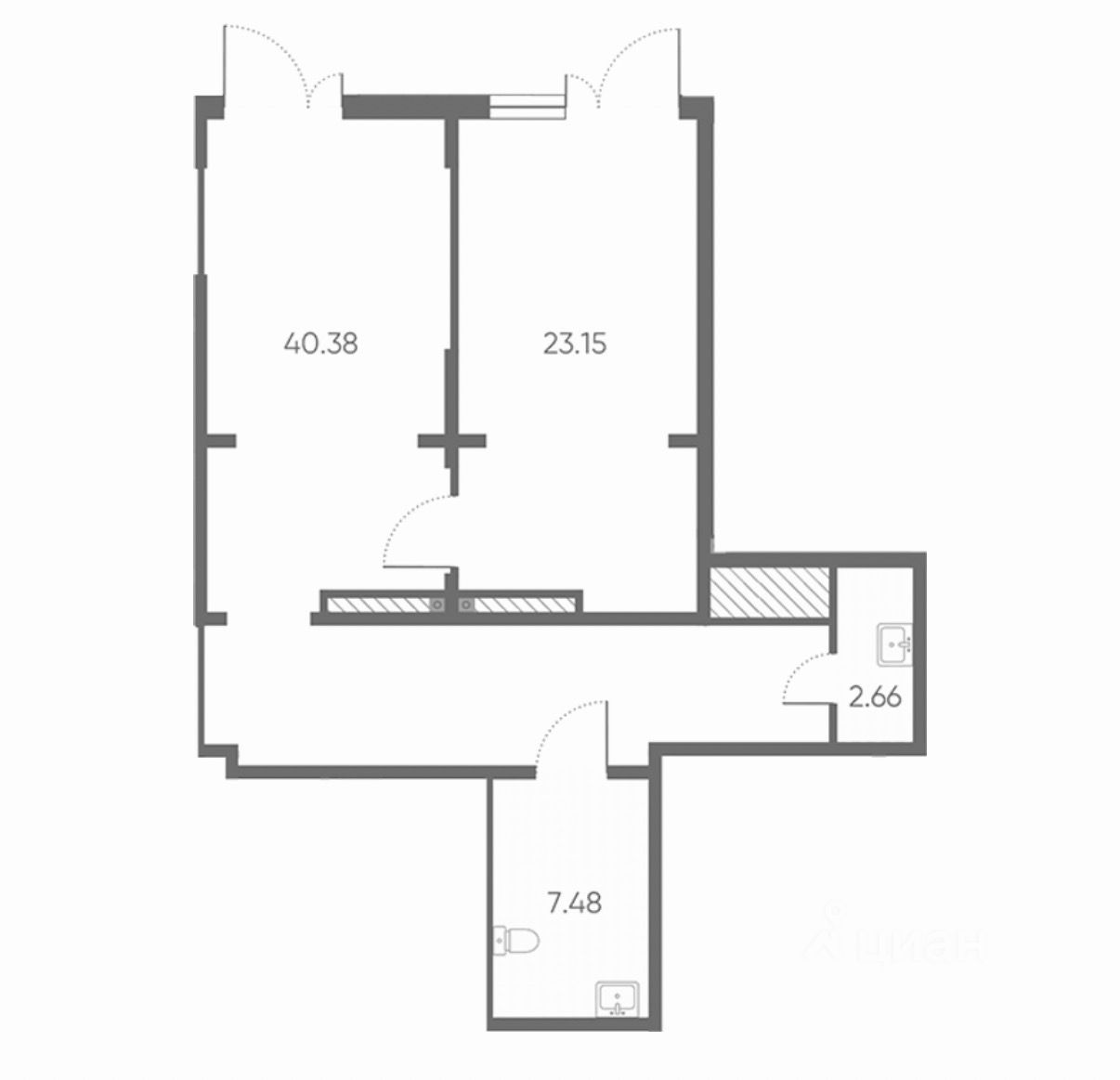 Предлагаем к продаже коммерческое помещение с площадью 74 м², расположенное на первом этаже.
