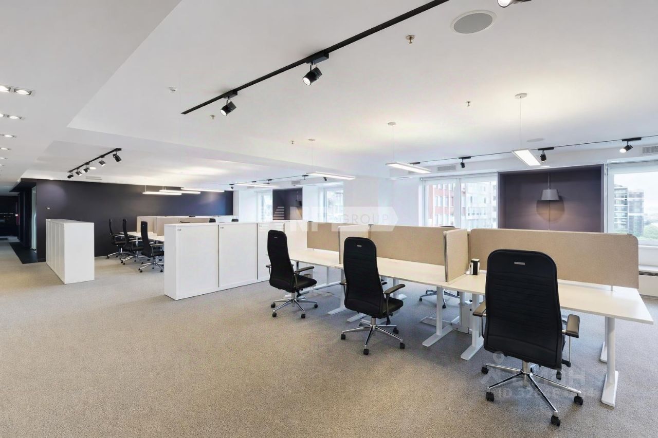 Офисное пространство организовано как полноценная штаб-квартира и включает видовой open space площадью 127 м², переговорные комнаты, кабинеты руководителей и зону ресепшн, а также функциональные зоны для сотрудников — кухню и лаунж-пространство, душевую и раздельные санузлы. Предусмотрена серверная и профессиональная IT-инфраструктура. Интерьер дополнен эргономичной мебелью и продуманными системами хранения, зонированным освещением и системой кондиционирования, а также нишами для отдыха сотрудников, что обеспечивает комфортную и эффективную рабочую среду.