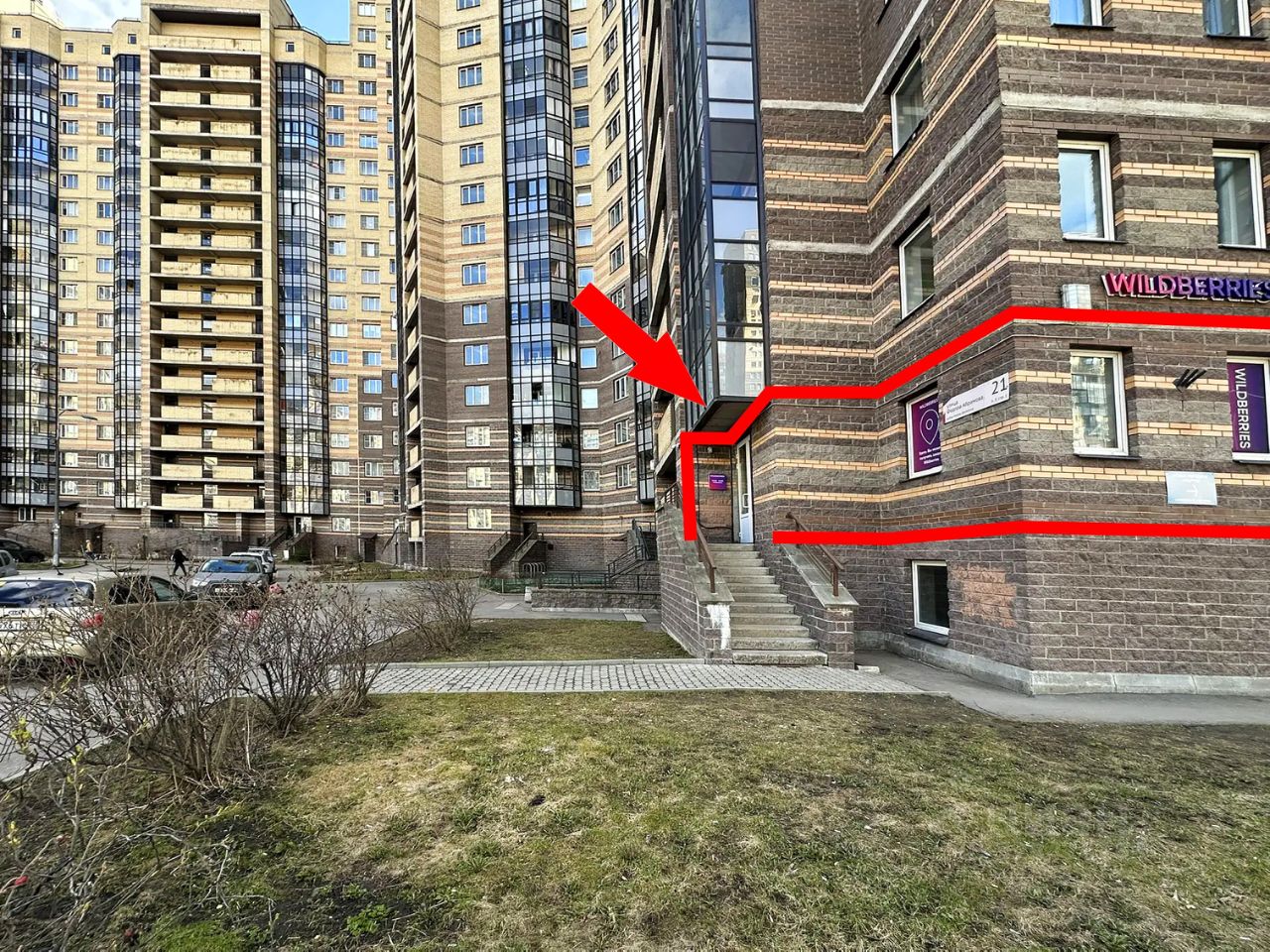Продаётся коммерческое помещение свободного назначения с арендатором ПВЗ, в очень крупном ЖК Северная долина, по адресу: пос. Парголово, ул. Фёдора Абрамова, д. 21, корп. 3.