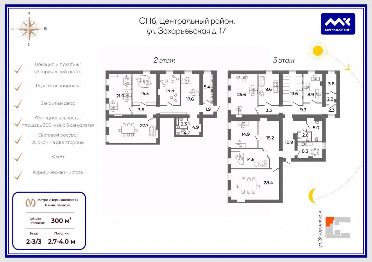 Помещение занимает 2-й и 3-й этажи. Главная ценность объекта — 25 фасадных окон, выходящих на улицу и торец здания. Это обеспечивает: