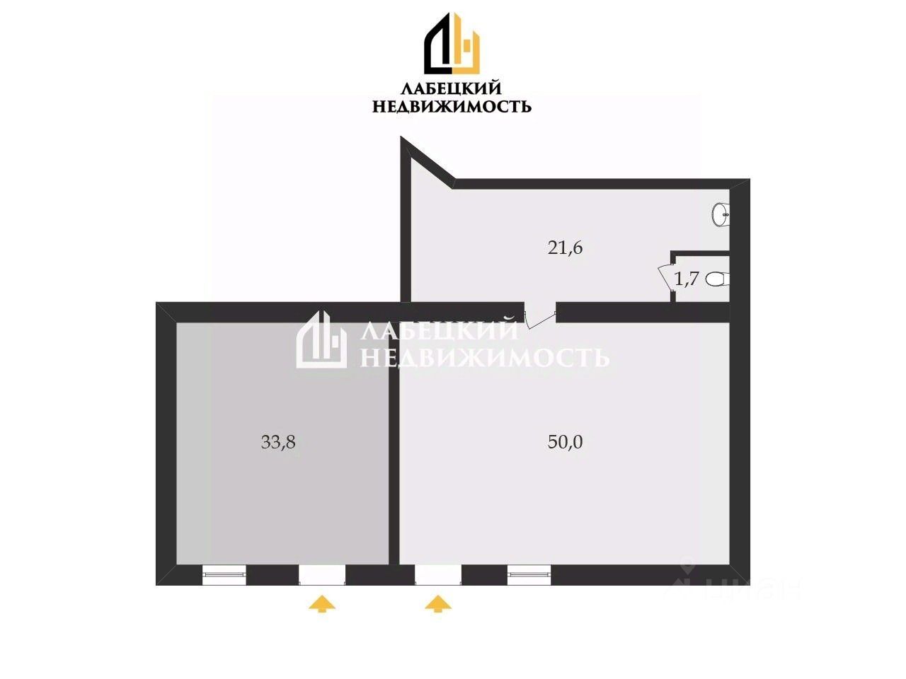 - 2 раздельных помещения правильной прямоугольной формы площадью 73.3 и 33.8м2;