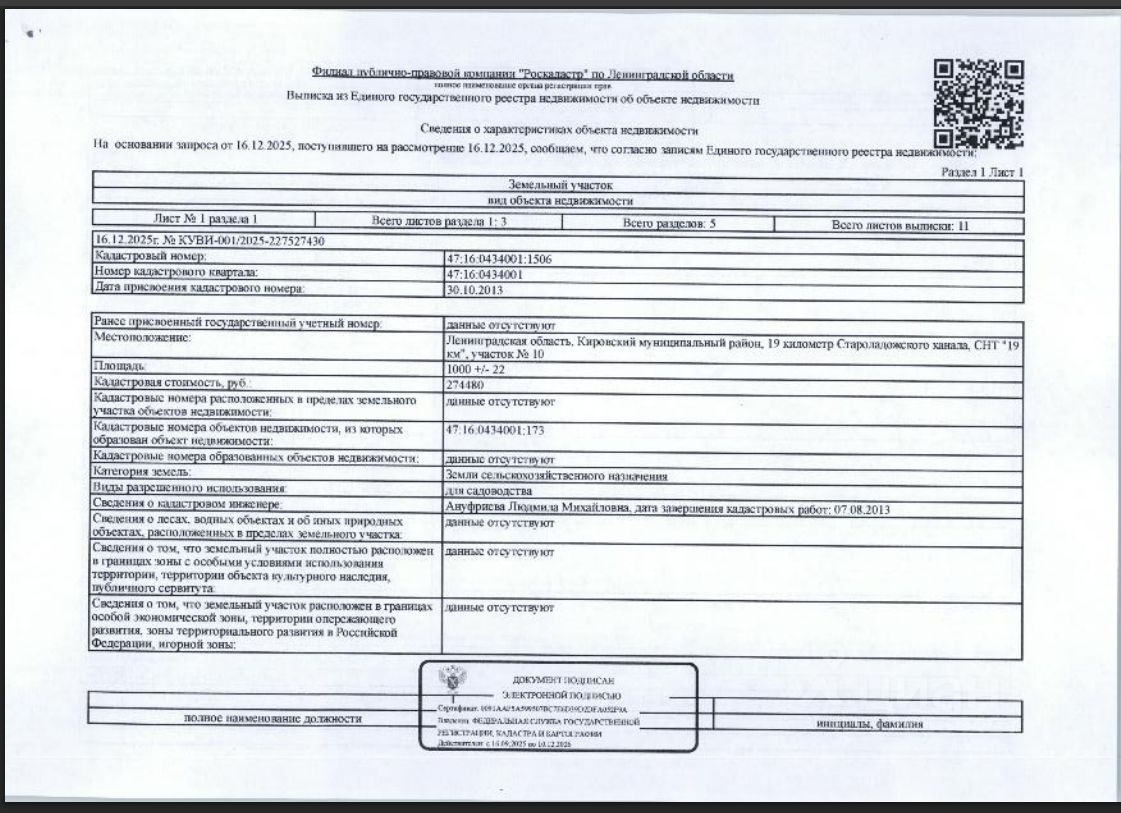 Подвергнутое аресту принадлежащее должнику Зайцеву В.Л. имущество: земельный участок общ.пл. 1000 кв.м. кадастровый 47:16:0434001:1506 категория земель - земли сельскохозяйственного назначения, расположенный по адресу: Ленинградская область, Кировский муниципальный район, 19 километр Староладожского канала, СНТ "19 км", участок 10. Обременение: запреты регистрационных действий ФССП.