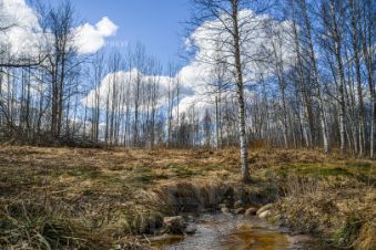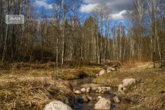 Расчищен и расширен природный ручей. Закуплены декоративные валуны. Территория подготовлена к ландшафтному оформлению.