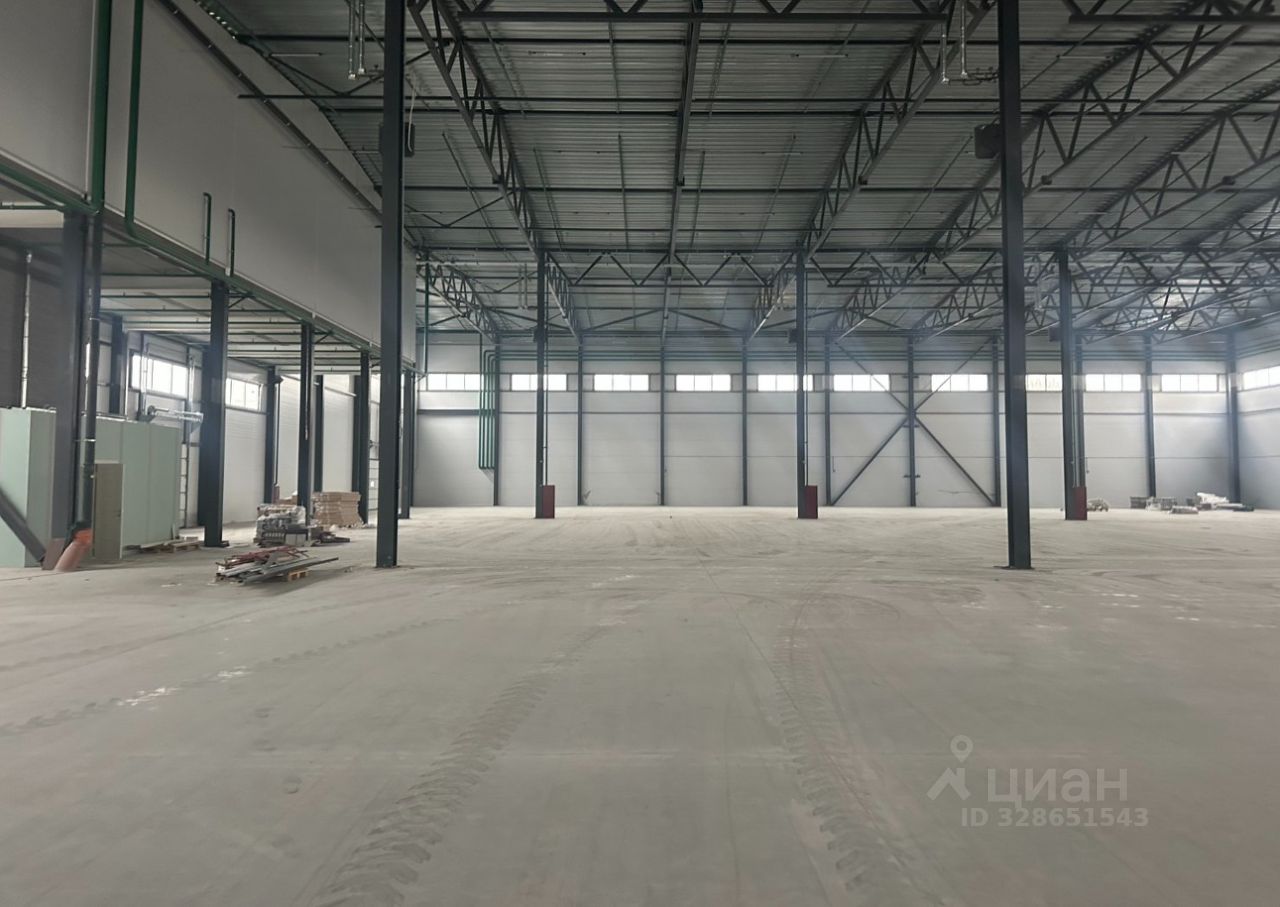 Площадь здания 3000 кв.м. , одноэтажное, потолки 9 метров.