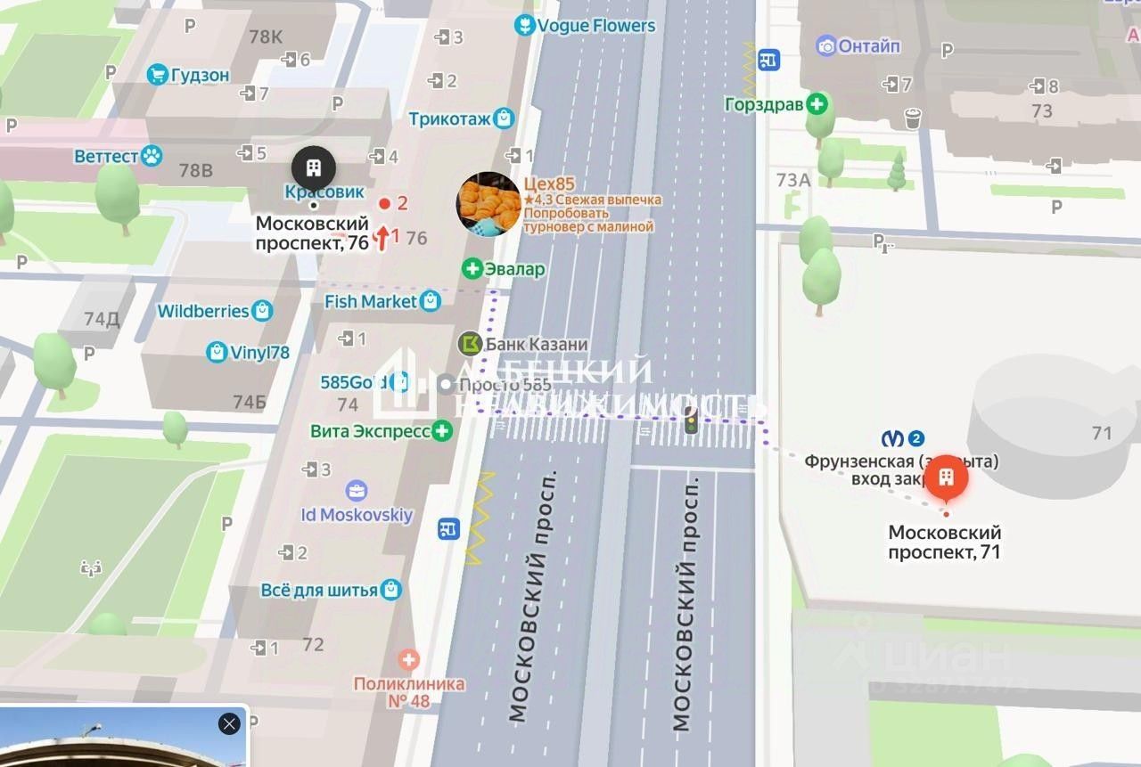 Помещение напротив метро "Фрунзенская" - первый этаж, два входа, потолки 3,6 м. Сильная локация для бизнеса с постоянным потоком клиентов.
